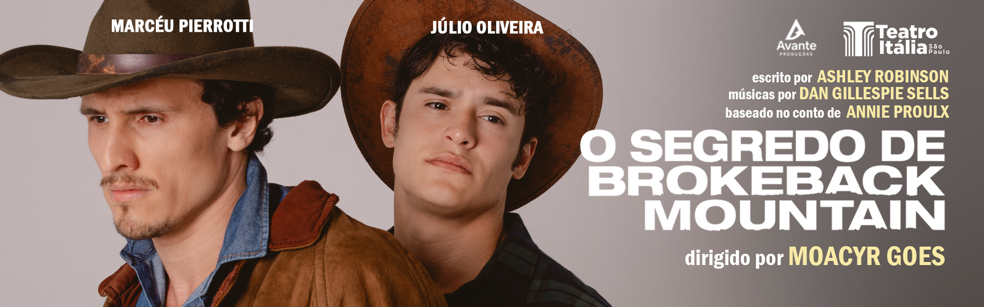 O clássico cinematográfico "O Segredo de Brokeback Mountain", vencedor de 3 Oscars, chega a São Paulo em sua segunda montagem oficial mundial. Estrelado por Marcéu Pierrotti e Júlio Oliveira, o espetáculo estreia em 14 de janeiro no Teatro Itália, no centro de São Paulo, para uma temporada que segue até 22 de março. A primeira montagem ocorreu em Londres (2023), com Mike Faist e Lucas Hedges nos papéis principais, conquistando diversos prêmios e aclamação do público e da crítica. No Brasil, dirigida por Moacyr Góes, a peça estreou no Rio de Janeiro em 2024 antes de chegar à capital paulista. A versão brasileira conta com tradução de Miguel Góes, trilha sonora original de Dan Gillespie Sells e texto de Ashley Robinson.